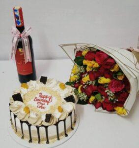 Family Celebration Cake & Rose Bouquet Combo